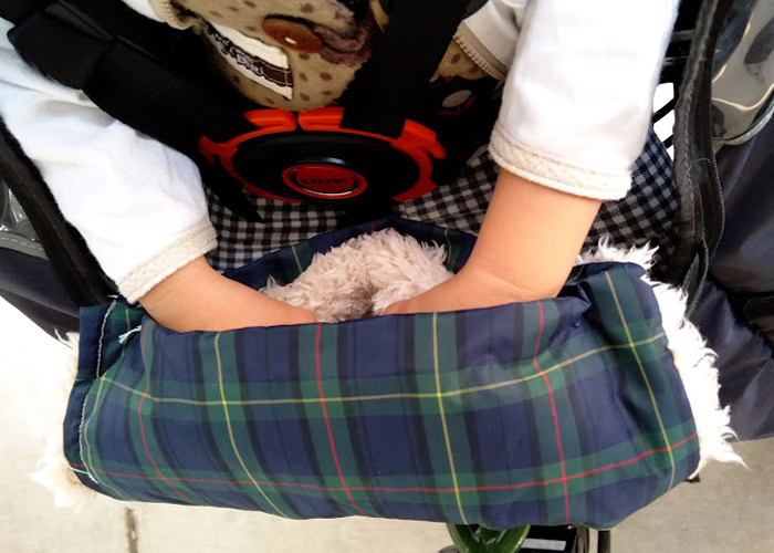 手作り育児グッズ 冬の子供乗せ自転車には手袋を作り付け!(ハンドル防寒カバー)
